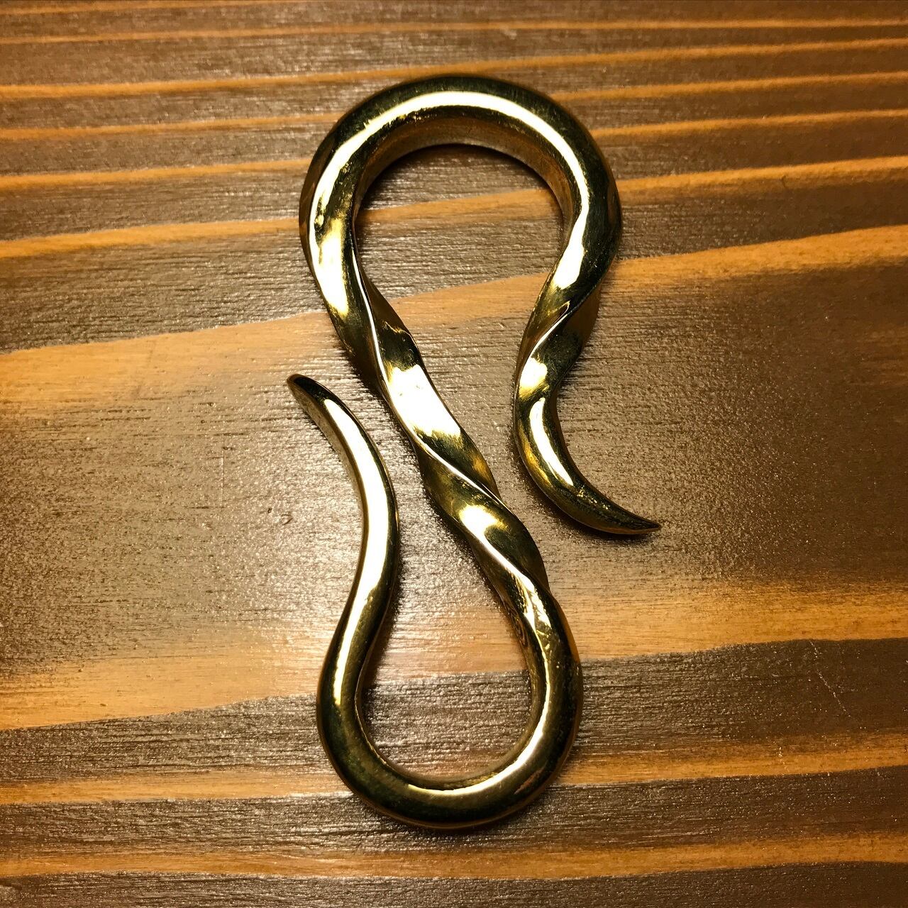 部分的にねじり加工を施した、大きいサイズのブラス製S字フックです。