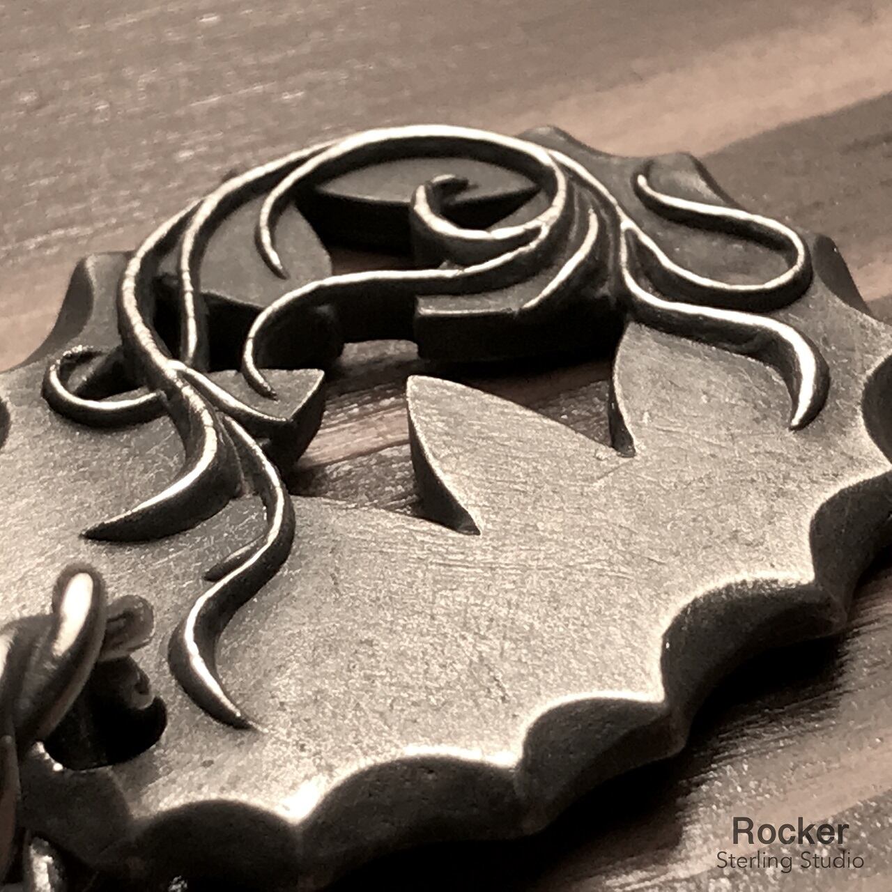 本体はマットな艶消し、唐草・ロープのバチカンは輝く鏡面と、二種類の手法を採用しております。
