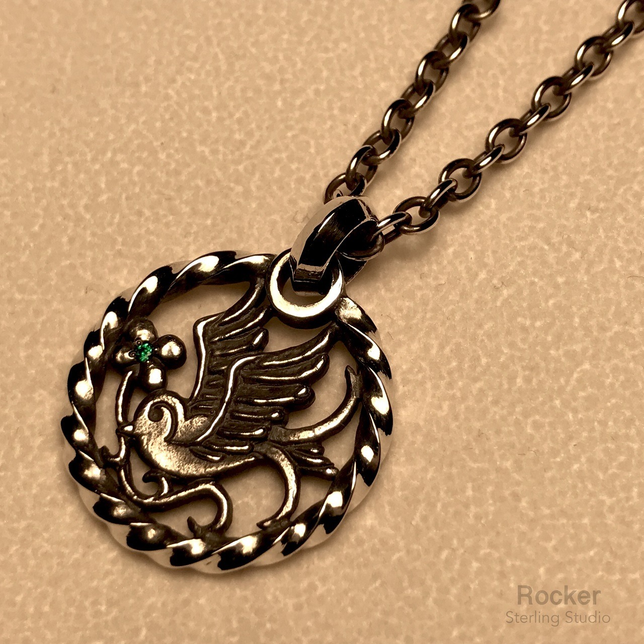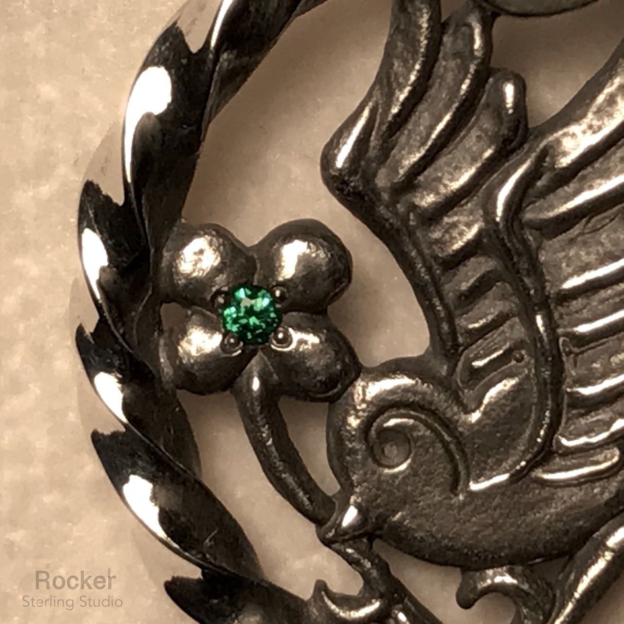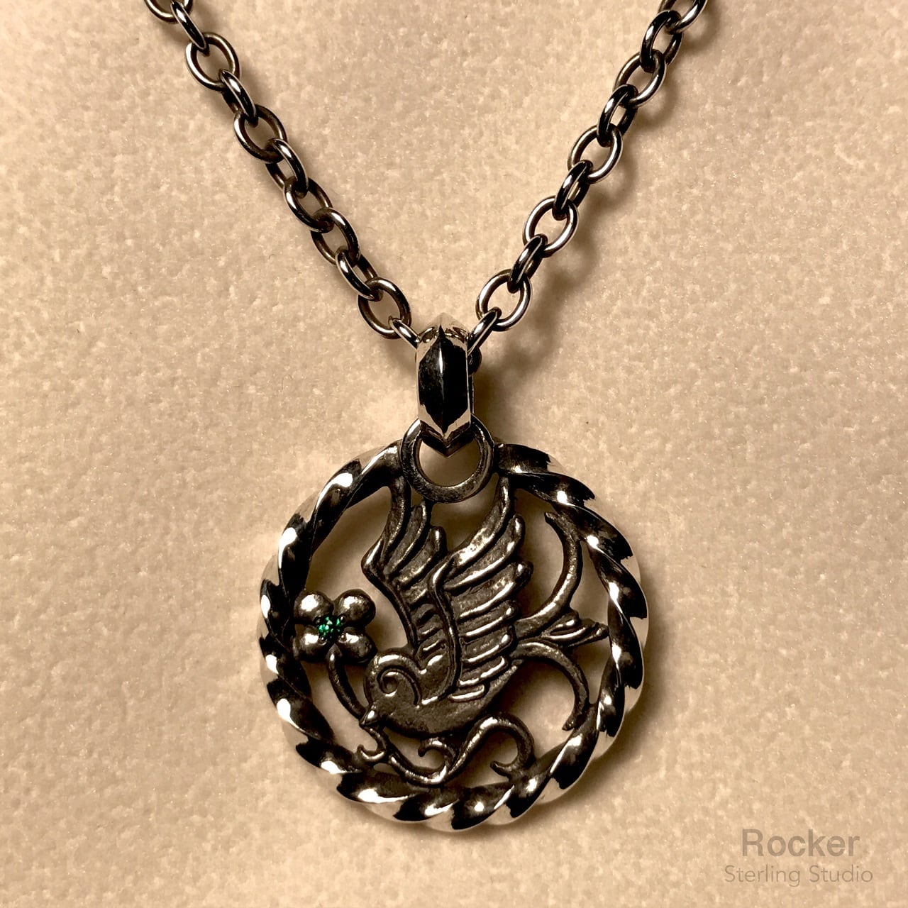 チェーンを通すバチカンやツイストサークルを鏡面、それに対しツバメ部分をナチュラルに少し粗く仕上げております。