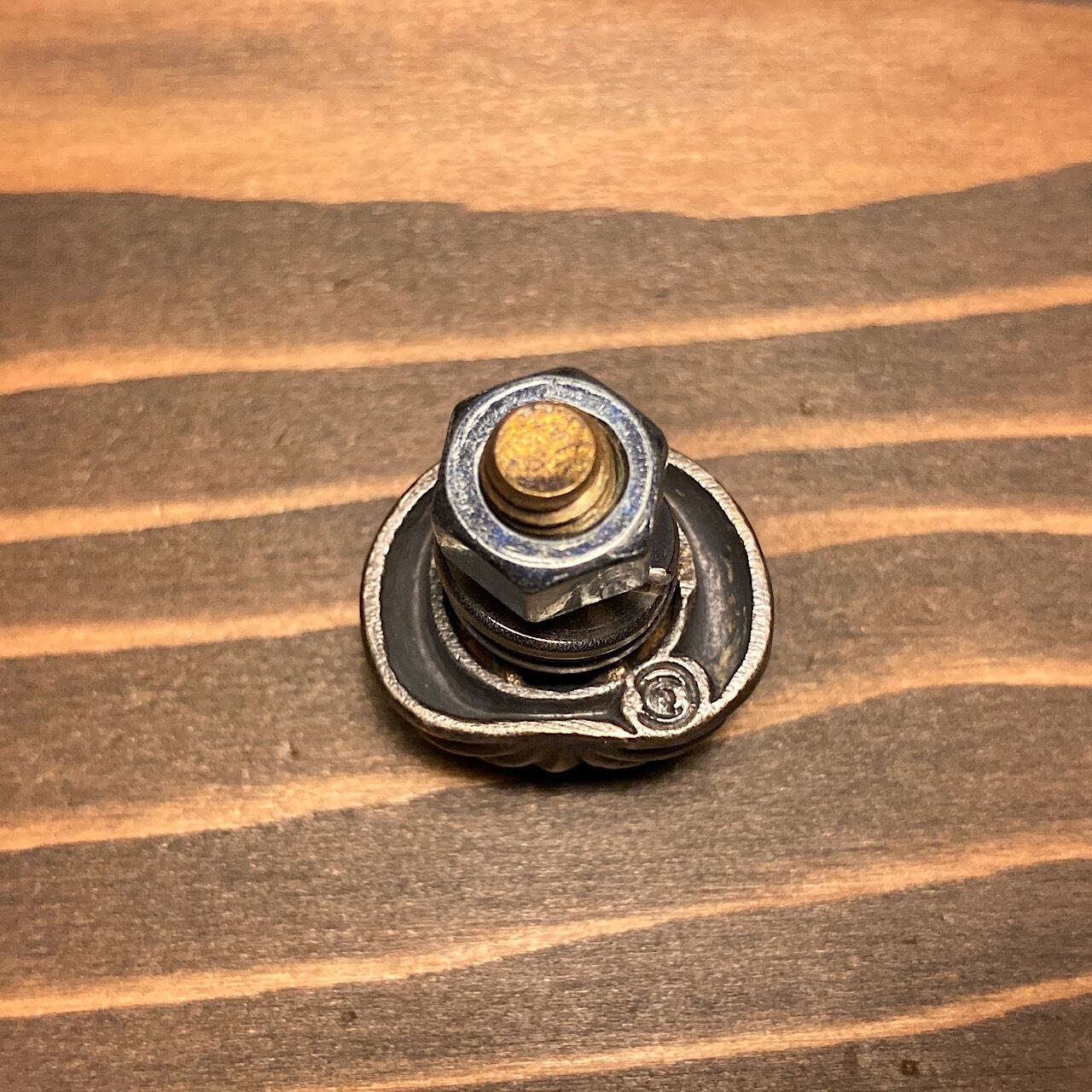 ハロウィンで使用されるかぼちゃのランタンをモチーフにした、シルバー製のライセンスボルトになります。