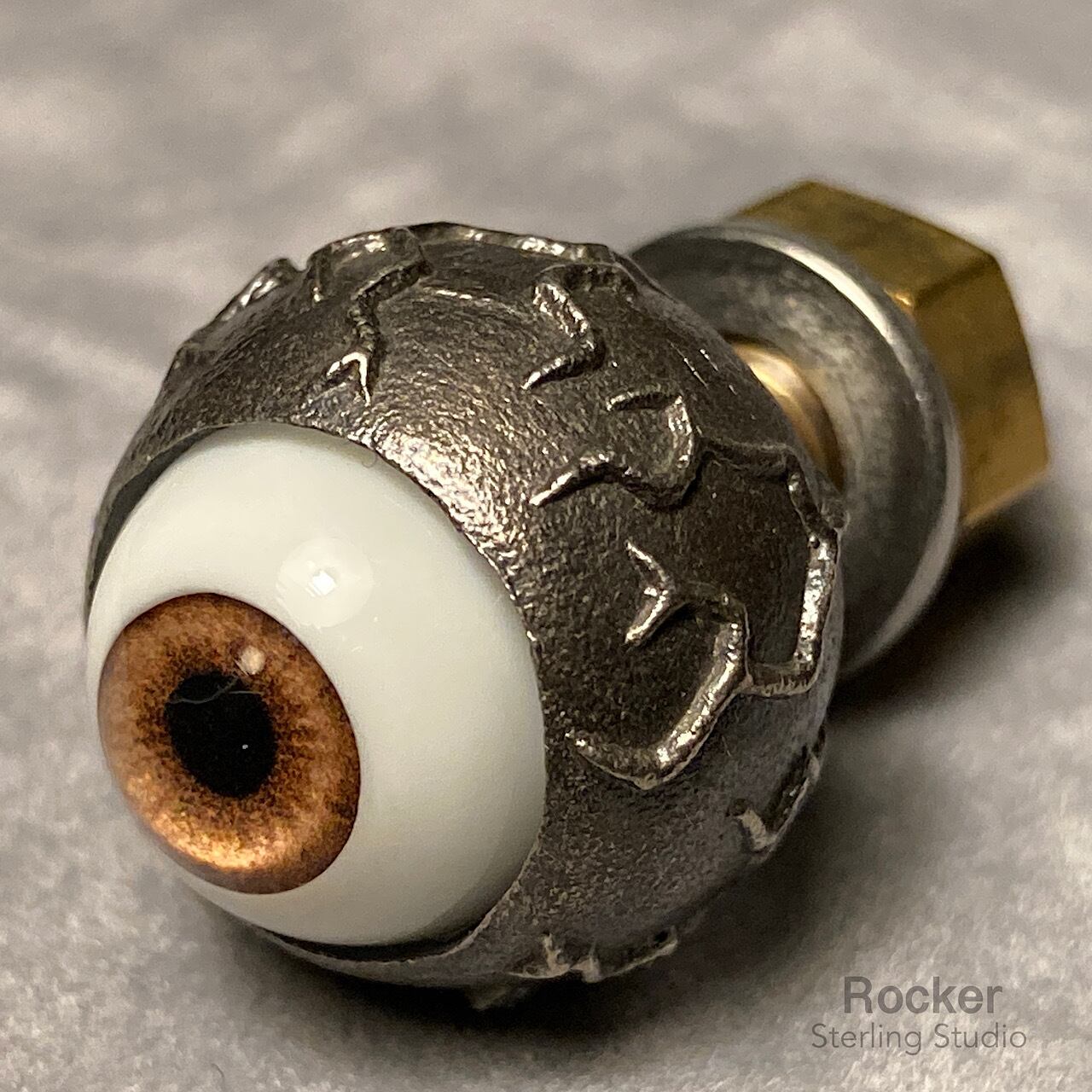 血管を浮かせたヘッドにアクリル製の目玉をセットした、シルバー製のライセンスボルトになります。