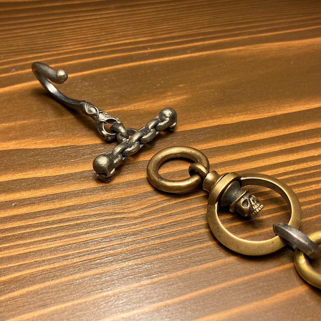 また、一般的になり過ぎないよう、チェーン両サイドの回転カンは、ベルト側をシルバー、財布側にはブラスを使用し変化を強調しました。