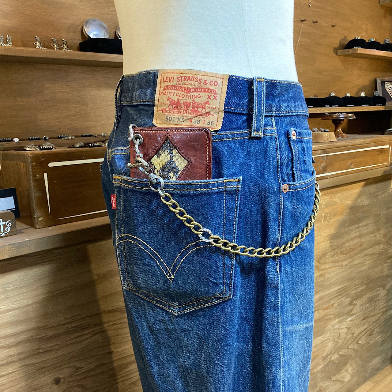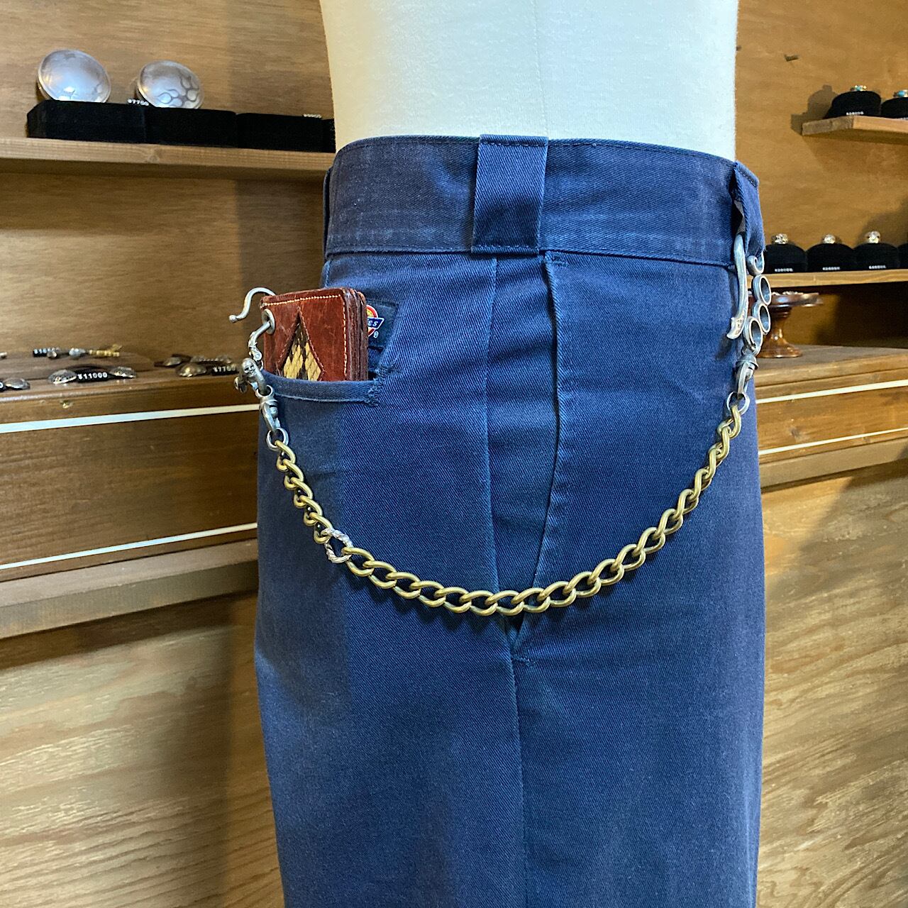 シルバーとブラスを組み合わせたウォレットチェーンです。