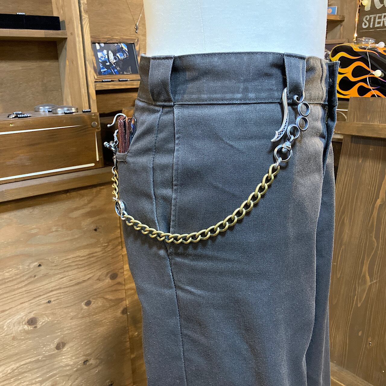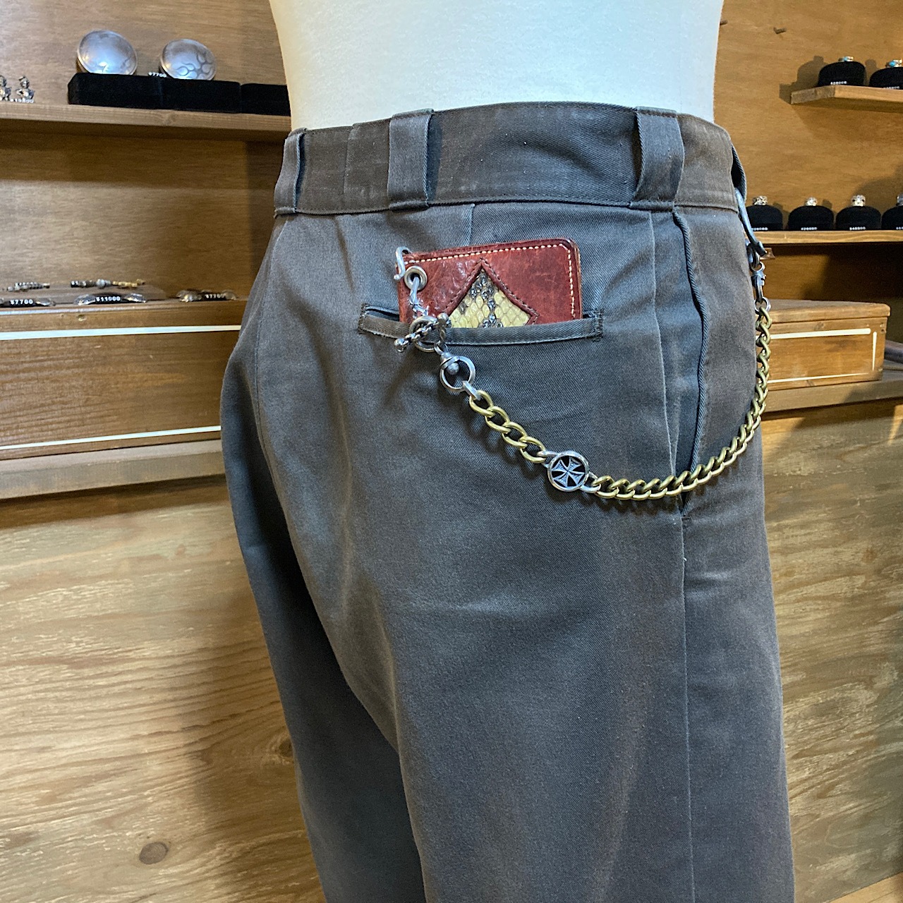 シルバーとブラスを組み合わせたウォレットチェーンです。