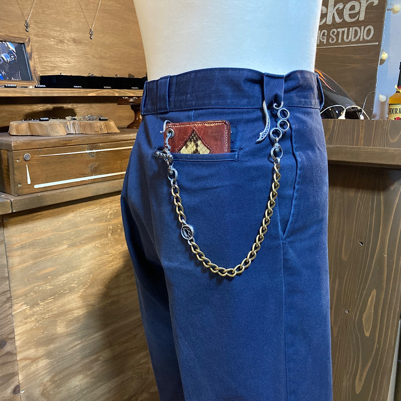 シルバーとブラスを組み合わせたウォレットチェーンです。